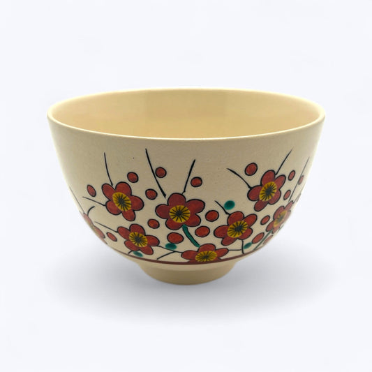 VIntage Kutani Ware Matcha Bowl – Plum Blossom Design by Kōzan, with Signed Wooden Box