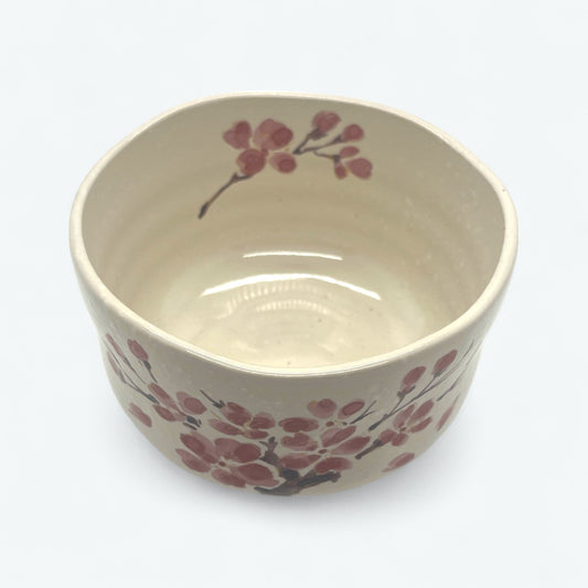 VIntage Kutani Ware Matcha Bowl – Plum Blossom Design by Kōzan, with Signed Wooden Box