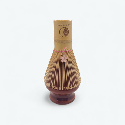 A chasen is a traditional Japanese bamboo whisk designed to blend matcha powder and water into a creamy, frothy tea.