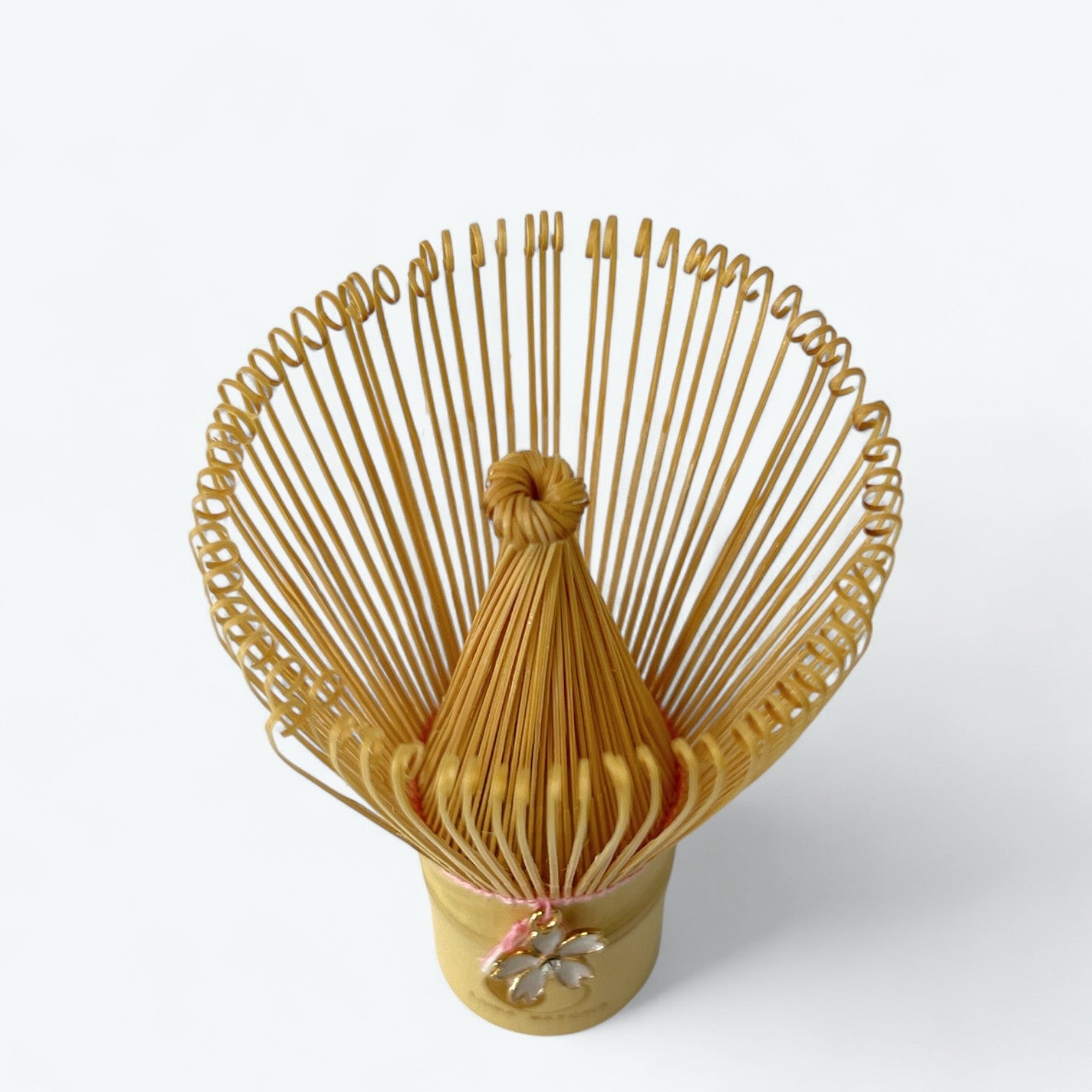 Bring springtime charm to your tea ritual with our Handmade Bamboo Matcha Whisk (Chasen). Crafted with 100 prongs, this whisk produces a fine froth for authentic matcha enjoyment.