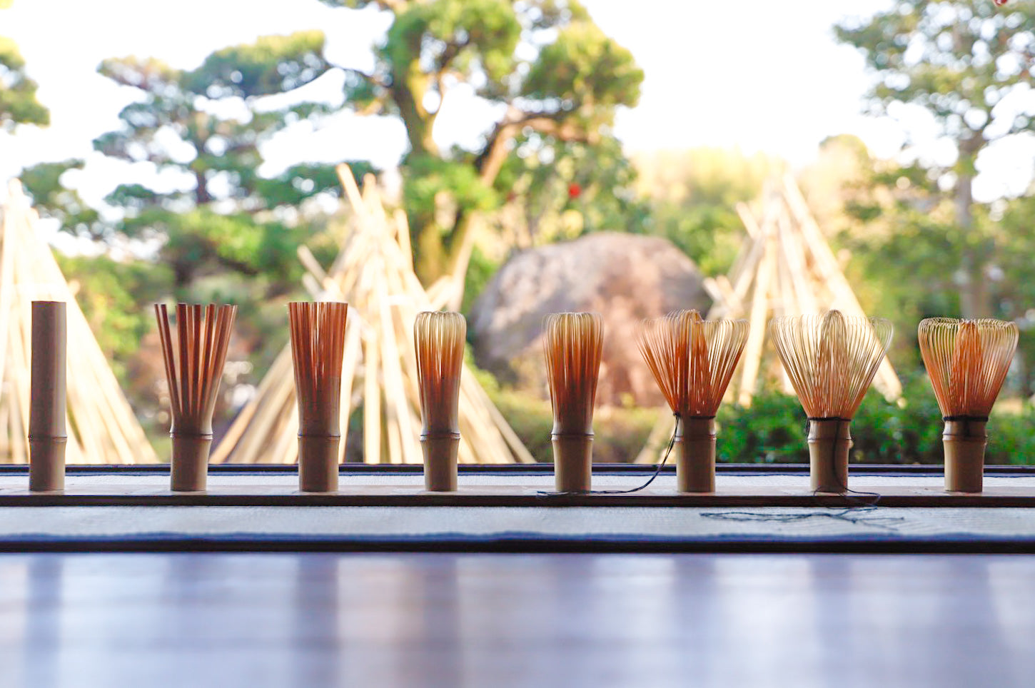 A small blade is used to cut and trim the bamboo into a beautiful Chasen. The process of narrowing the prongs is called "Aji-kezuri", and is said to be the most difficult part as it even changes the taste of the Matcha.